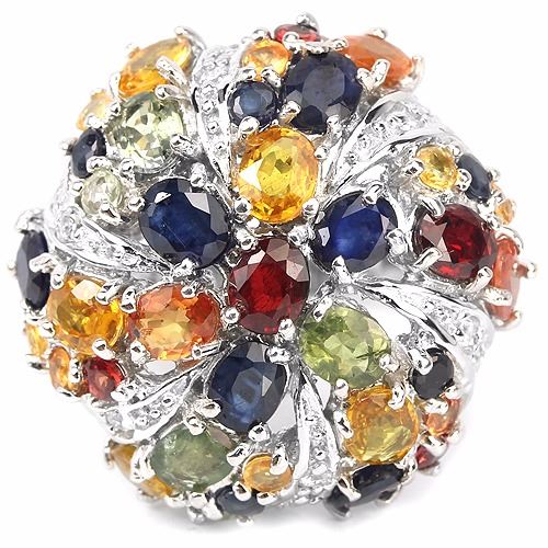 GENUINE SONGEA MULTI COLOR SAPPHIRE CZ 925 SILVER RING 14K WHITE GOLD COATING; RING SIZE, LENGTH OF ITEM (Inch.)8.00 ( can be resized )STONE SHAPE-OVAL ROUND;STONE DIMENSION-5 X 4 MM. , 2.5 MM.;ITEM WEIGHT-14.6 GRAM (heavy Ring)COLOR-MULTI COLOR;TREATMENT-HEATED;ORIGIN OF STONE-AFRICA;HARDNESS-9;FACE OF RING 28 X 27 MM.; WHITE CUBIC ZIRCONIA 1.7 MM.