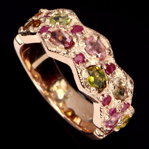 925 STERLING SILVER........PLATE-14K ROSE GOLD;RING SIZE-8;MAIN STONE-TOURMALINE;OTHER GEMS-RUBY;TOTAL WEIGHT-32.37 CT (TOTAL WEIGHT OF SILVER + STONE)DIMENSION* STONE 2.0 TO 4.3 MM. * FACE RING 22.0 X 9.0 MM.MAIN STONE SHAPE-OVAL CUT;MAIN STONE COLOR-MULTI-COLOR;CLARITY/GRADE-IF TO VVS;LUSTER-ELEGANT;TREATMENT-UNHEATED;ORIGIN-BRAZIL;HARDNESS-7
