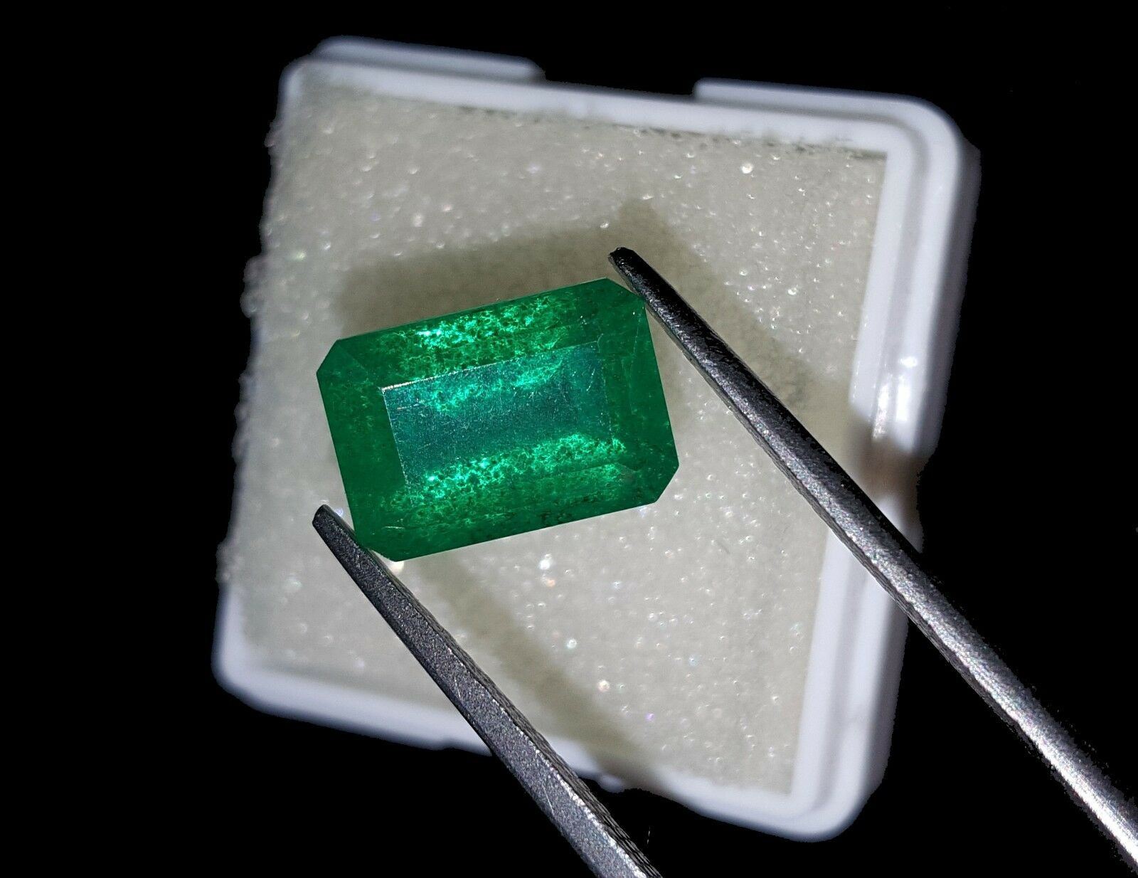 Country of Origin:Zambia;Gemstone:Emerald;Natural earth mined :NaturalColor:Forest Green;Depth:6.19;Length:11.48 MM;Treatment:Enhanced;Width:7.98 MM; Total Carat Weight (TCW):7.48 Ct
