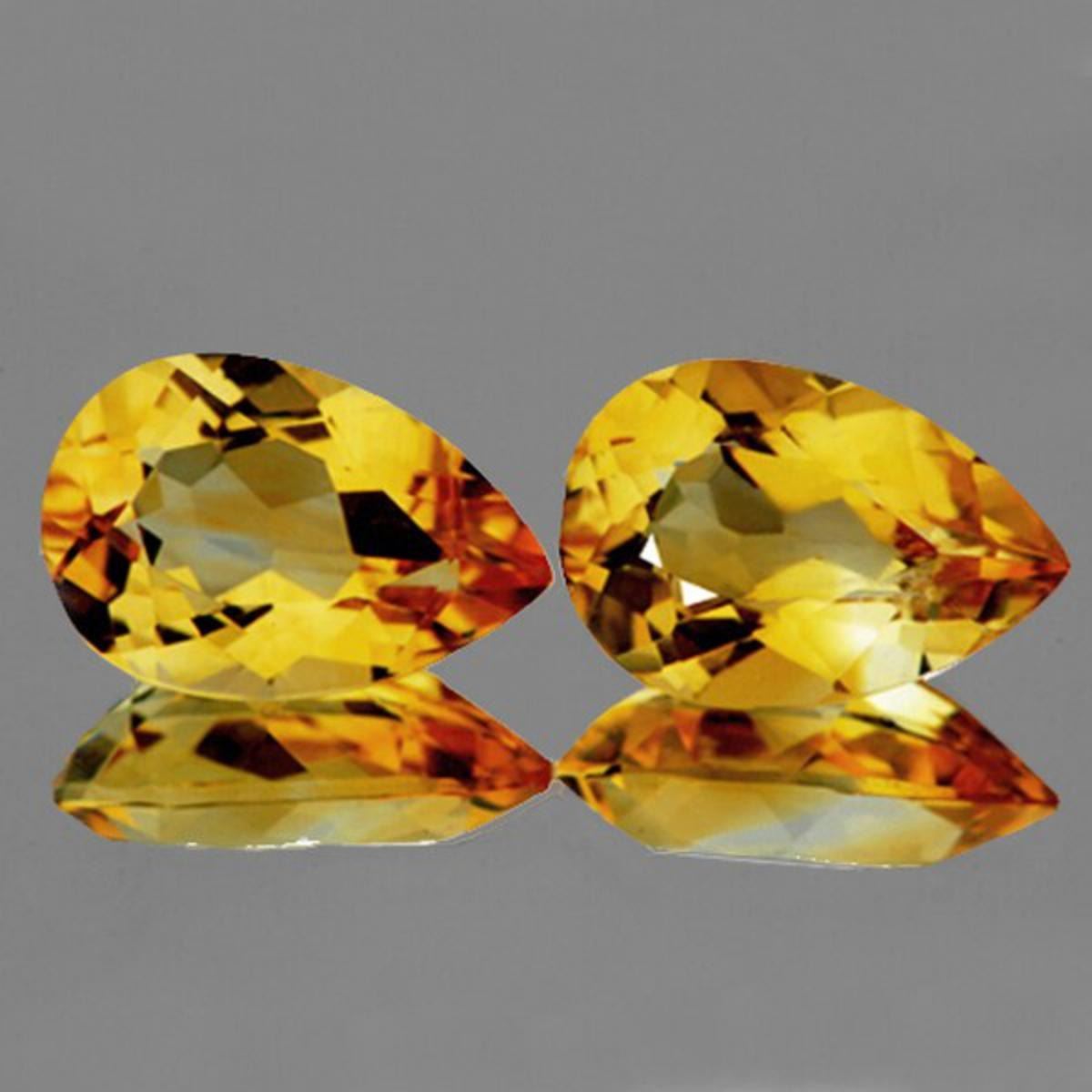 WEIGHT : 5.48 Ct;STONE NAME : Natural CitrineSIZE ( L x W x D ) : 12.0 x 8.0 mm;COLOR : Golden Orange; SHAPE : Pear;QUANTITY : 2 pieces LUSTER : Excellent CLARITY : IF-VVSHARDNESS : 7ORIGIN : Brazil TREATMENT : Heated