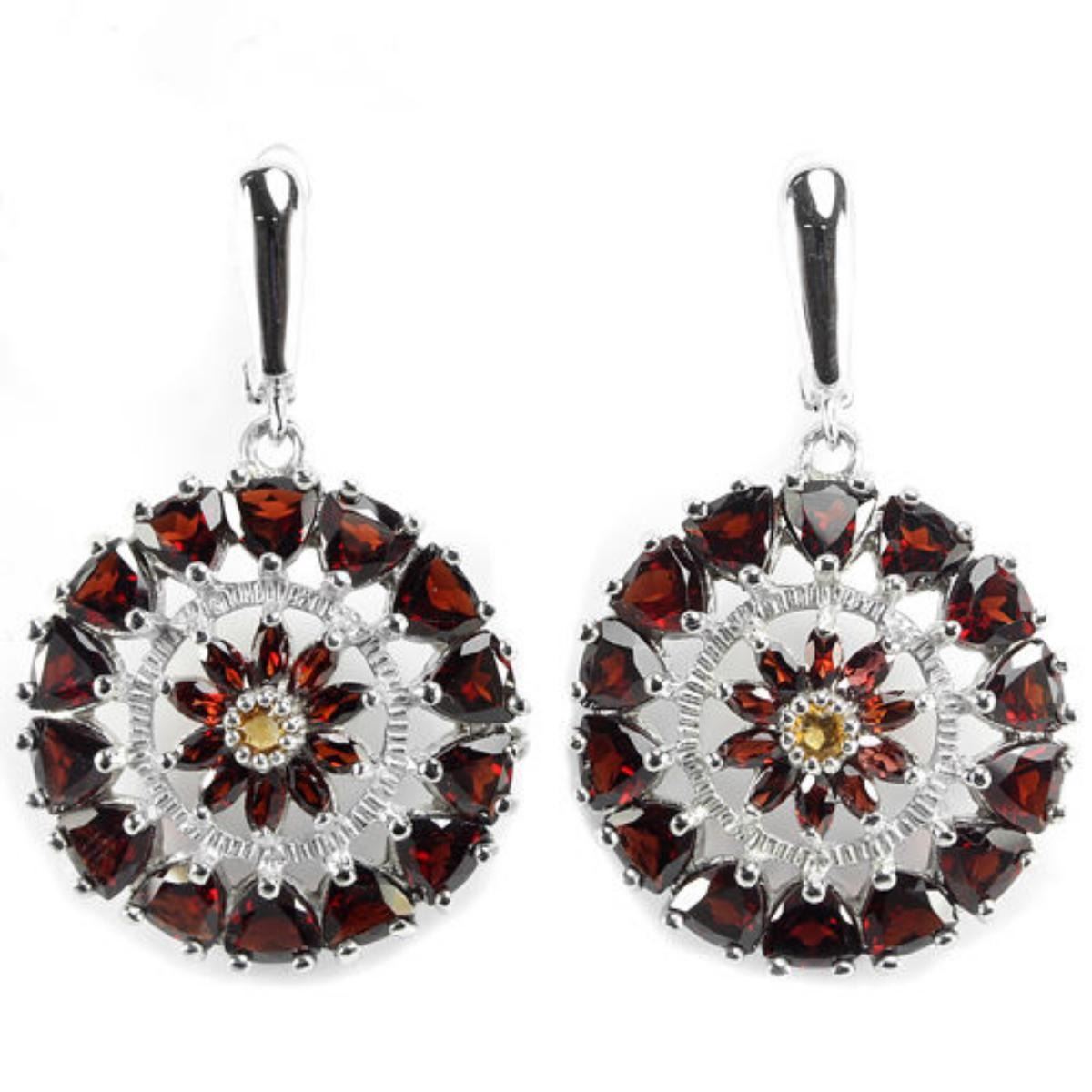 DARK ORANGE RED GARNET YELLOW CITRINE 925 SILVER EARRING14K WHITE GOLD COATING; STONE SHAPEMIXED SHAPESTONE DIMENSION4 X 4 MM. , 4 X 2 MM. , 3 MM.MAIN STONE WEIGHT10.4 CARATCOLORDARK ORANGE RED ORANGISH YELLOWCLARITYIF TO VVSLUSTERFASCINATINGTREATMENTNATURAL UNHEATEDORIGIN OF STONECAMBODIA BRAZILHARDNESS7 - 7.5OTHERFACE OF EARRING 43 X 27 MM. TOTAL 18.22 G.