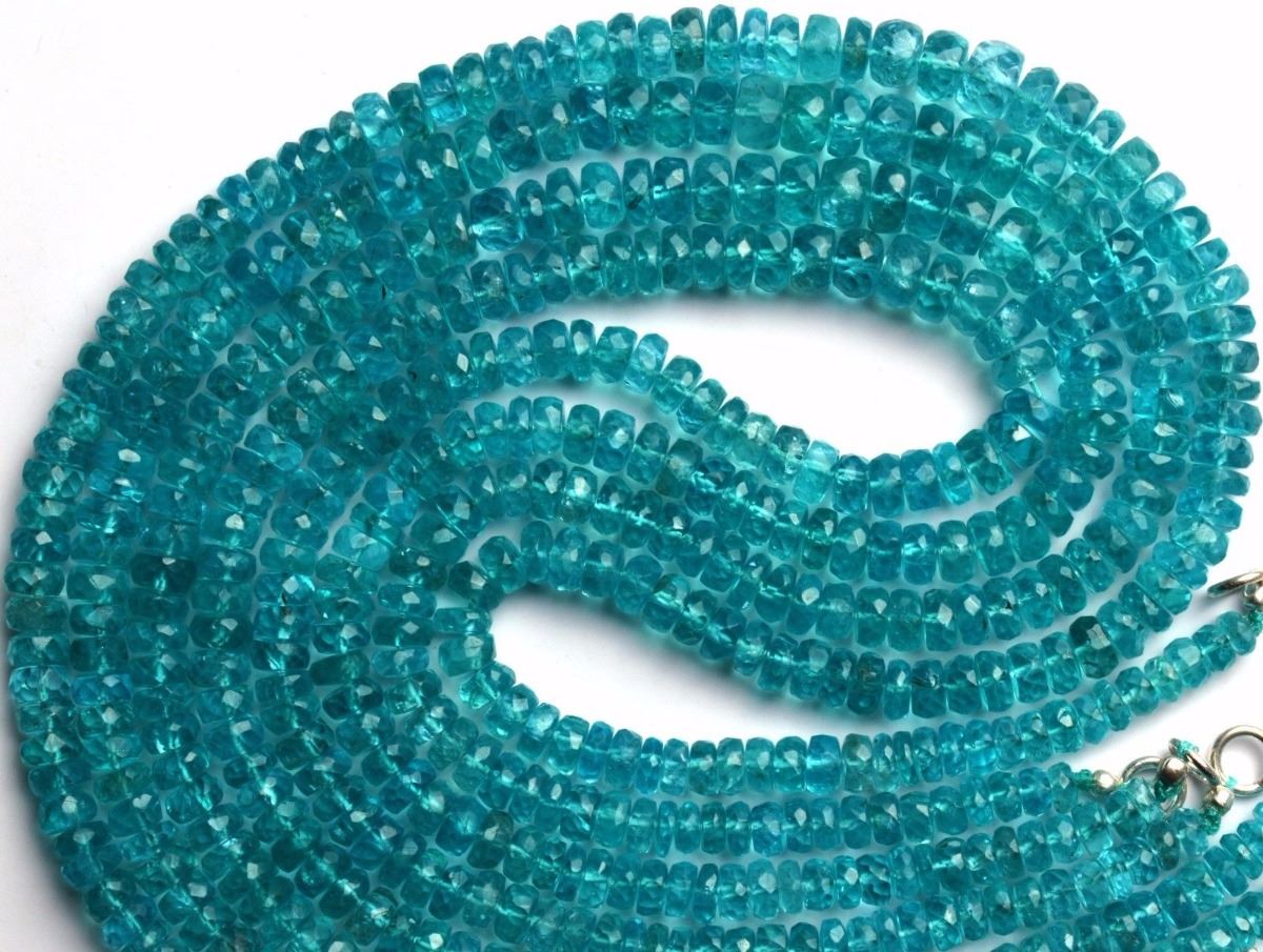 Natural Gem Blue Apatite 4-7MM Facet Beads Necklace 18 Inches Length....single line Necklace.
