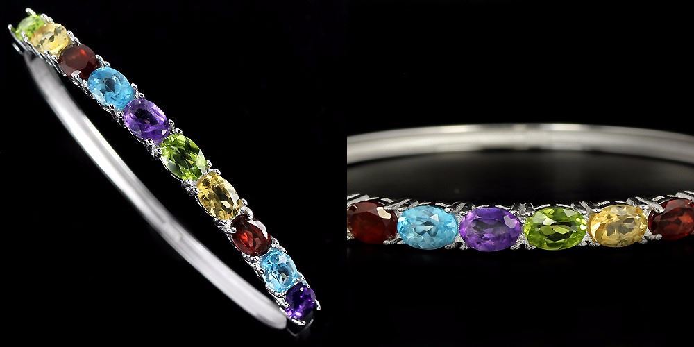 REAL AMETHYST CITRINE TOPAZ PERIDOT & GARNET STERLING 925 SILVER BANGLE SIZE 6.5; LENGTH OF Bangle (Inch.)6.50;ITEM QUANTITY1;STONE SHAPE- OVAL PORTGUESE CUT;STONE DIMENSION7 X 5 MM.;MAIN STONE WEIGHT-10.62 CARAT;COLORAAA MULTI COLOR;CLARITYIF - VVS;LUSTERDAZZLING;TREATMENTUNHEATED & IRRDIATION;ORIGIN OF STONEAFRICA, CAMBODIA, BRAZIL & ASIA;HARDNESS6.5 - 8.0;OTHERTOTAL 13.80 G.