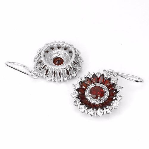 MOZAMBIQUE GARNET & WHITE TOPAZ (NATURAL) 14K WHITE GOLD COATING 925 SILVER EARRINGS;UNIT OF ITEM (S):2 PIECES;WEIGHT (CT.):35.34 CT. (total weight of silver + stone);DIMENSION:* STONE 2.0 TO 5.0 MM. * FACE EARRINGS 31.0 X 18.0 MM.;SHAPE/CUT:ROUND, MARQUISE FACET & ROUND DIAMOND CUT;COLOR:TOP RICH ORANGE & TOP WHITE;CLARITY/GRADE:IF TO VVS;LUSTER:GORGEOUS;TREATMENT:UNHEATED;ORIGIN:AFRICA & BRAZIL;HARDNESS:7.0 - 8.0;