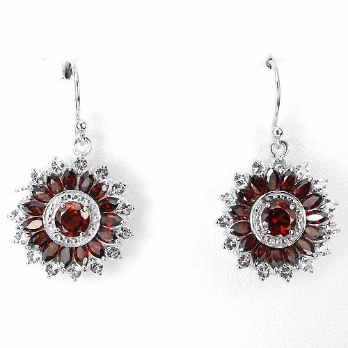 MOZAMBIQUE GARNET & WHITE TOPAZ (NATURAL) 14K WHITE GOLD COATING 925 SILVER EARRINGS;UNIT OF ITEM (S):2 PIECES;WEIGHT (CT.):35.34 CT. (total weight of silver + stone);DIMENSION:* STONE 2.0 TO 5.0 MM. * FACE EARRINGS 31.0 X 18.0 MM.;SHAPE/CUT:ROUND, MARQUISE FACET & ROUND DIAMOND CUT;COLOR:TOP RICH ORANGE & TOP WHITE;CLARITY/GRADE:IF TO VVS;LUSTER:GORGEOUS;TREATMENT:UNHEATED;ORIGIN:AFRICA & BRAZIL;HARDNESS:7.0 - 8.0;