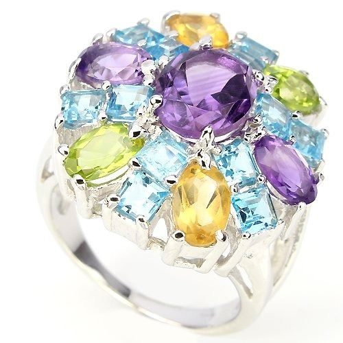 NATURAL AMETHYST-CITRINE-PERIDOT-TOPAZ STERLING 925 SILVER RING .........SIZE 7; 100% natural earth mined gems.....clarity ----IF/VVS; Total weight .....38.40 carats; Msrp.......975