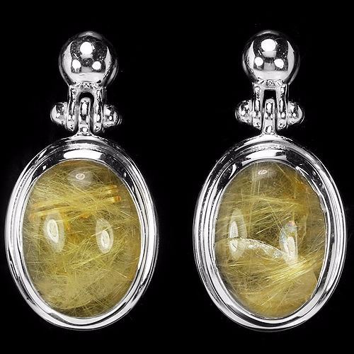 NATURAL AAA GOLD RUTILATED QUARTZ OVAL 925 SILVER EARRING 14K WHITE GOLD COATING; STONE SHAPE-OVAL CABOCHON CUT;STONE DIMENSION-13 X 10 MM.;ITEM WEIGHT-6.4 GRAM;COLOR-GOLD RUTILATED;CLARITY-TRANSLUCENT;LUSTER-AMAZING;TREATMENT-NATURAL UNHEATED;ORIGIN OF STONE-BRAZIL;HARDNESS-7;FACE OF EARRING -25 X 13 MM.;