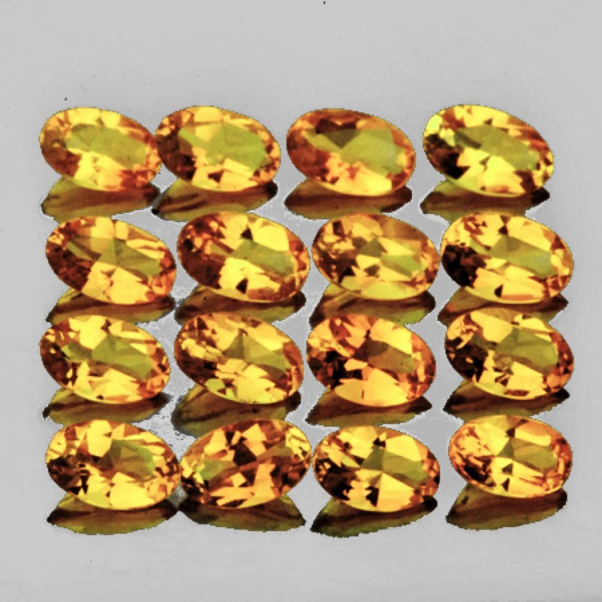 Natural Citrine; SHAPE : Oval; SIZE ( L x W x D ) : 5.00 x 3.00 mm; QUANTITY : 16 pieces (Perfect Matching Set) COLOR : Golden Yellow ; CLARITY : Flawless-VVS; ORIGIN : Brazil; HARDNESS : 7; LUSTER : AAA Fire!!! TREATMENT : 100% Natural Unheated;