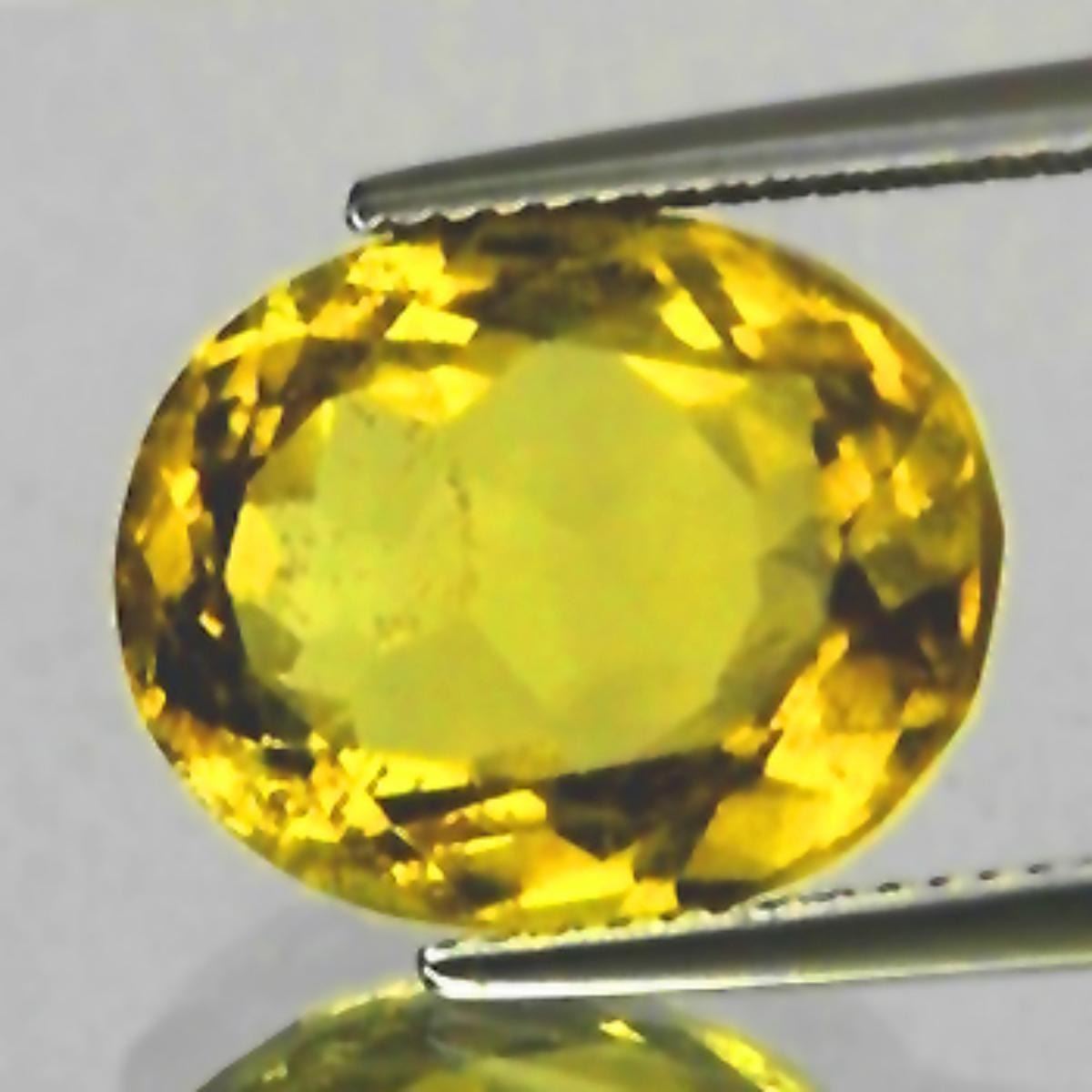 Natural Citrine WEIGHT : 9.30 cts SHAPE : Oval SIZE ( L x W x D ) : 15.21 x 11.97 x 8.11 mm QUANTITY : 1 pieces COLOR : Golden Yellow CLARITY : VVS -VS (Ec) ORIGIN : Africa HARDNESS : 7 LUSTER : Excellent!!! TREATMENT : 100% Natural Unheated