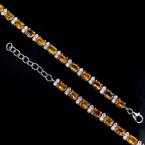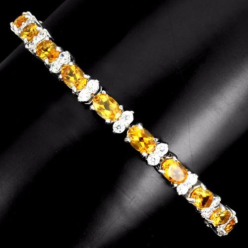 CITRINE (NATURAL) & CUBIC ZIRCONIA 14K WHITE GOLD PLATED 925 SILVER BRACELETUNIT OF ITEM (S):1 PIECEWEIGHT (CT.):67.50 CT. (total weight of silver + stone)DIMENSION:* STONE 6.0 X 4.0 MM. * CZ 2.0 MM. * LENGTH 8.5 INCHES. * FACE BRACELET 170.0 X 5.0 MM.SHAPE/CUT:OVAL FACET & ROUND DIAMOND CUTCOLOR:TOP RICH YELLOW & AAA WHITECLARITY/GRADE:IF TO VVSLUSTER:GORGEOUSTREATMENT:UNHEATEDORIGIN:BRAZILHARDNESS:7.0