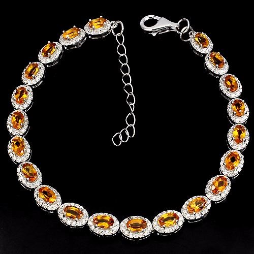 CITRINE (NATURAL) & CUBIC ZIRCONIA 14K WHITE GOLD PLATED 925 SILVER BRACELETUNIT OF ITEM (S):1 PIECEWEIGHT (CT.):49.70 CT. (total weight of silver + stone)DIMENSION:* STONE 5.0 X 3.0 MM. * CZ 1.0 MM. * LENGTH 8.5 INCHES. * FACE BRACELET 160.0 X 5.0 MM.SHAPE/CUT:OVAL FACET & ROUND DIAMOND CUTCOLOR:TOP RICH YELLOW & AAA WHITECLARITY/GRADE:IF TO VVSLUSTER:GORGEOUSTREATMENT:UNHEATEDORIGIN:BRAZILHARDNESS:7.0