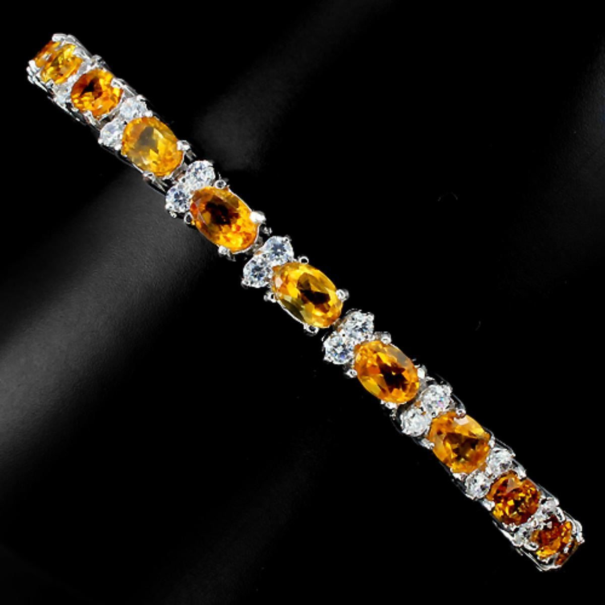 CITRINE (NATURAL) CUBIC ZIRCONIA 14K WHITE GOLD PLATED 925 SILVER BRACELETUNIT OF ITEM (S):1 PIECEWEIGHT (CT.):66.37 CT. (total weight of silver + stone)DIMENSION:* STONE 6.0 X 4.0 MM.* CZ 2.0 MM. * LENGTH 8.5 INCHES. * FACE BRACELET 170.0 X 5.0 MM.SHAPE/CUT:OVAL FACET ROUND DIAMOND CUTCOLOR:TOP RICH YELLOW AAA WHITECLARITY/GRADE:IF TO VVSLUSTER:FASCINATINGTREATMENT:UNHEATEDORIGIN:BRAZILHARDNESS:7.0