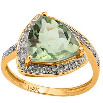 10KT SOLID YELLOW GOLD........Metal Weight by Gram:2.19;Total Weight by Gram:2.80;Size:7; GENUINE DIAMOND.............Quantity:21;Cut:ROUND CUT;Carat:0.110;Clarity:SI1-I2;Color:G-I...GREEN AMETHYSTQuantity:1Cut:TRILLION CUTCarat:2.960Clarity:VERY GOODColor:LIGHT GREEN TEA