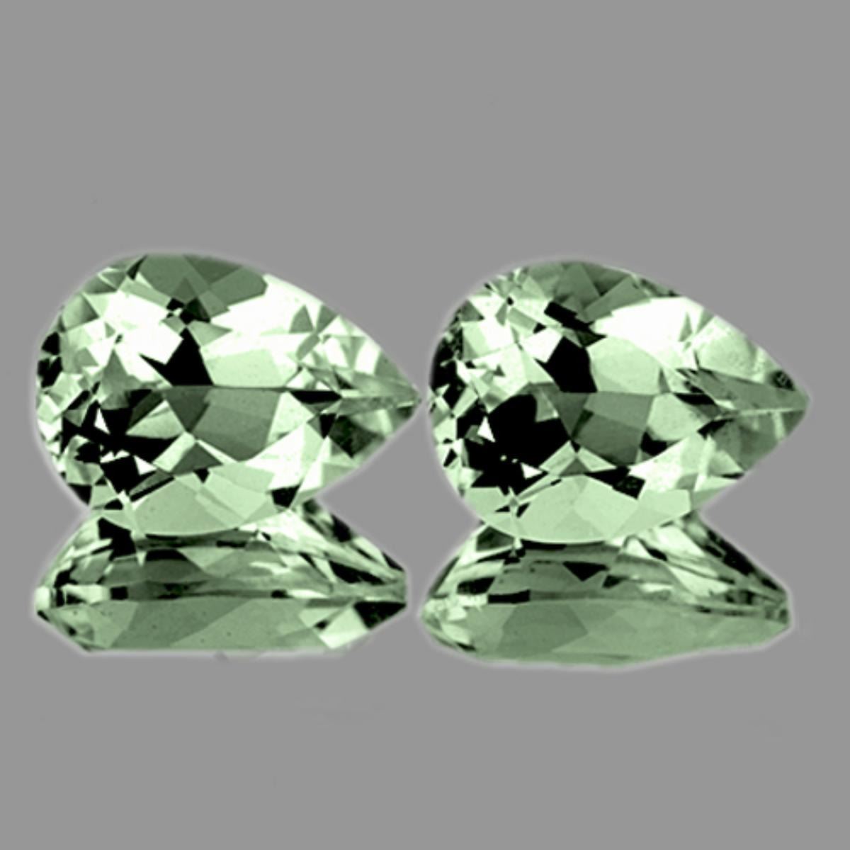 Natural Green Amethyst ....... SHAPE : Pear SIZE ( L x W x D ) : 14 x 10 mm QUANTITY : 2 pieces COLOR : Green CLARITY : Flawless ORIGIN : Brazil HARDNESS : 7 LUSTER : Excellent!!! TREATMENT : Heated