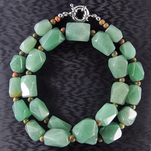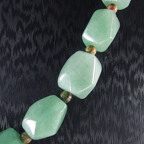 Stone Name Green Aventurine *Stone Overall Dimension for each bead 17x16x15 mm (0.669x0.630x0.591 inch ) *Weight 420 ct/ 84 g/ 2.963016 oz*Handcrafted knot chainOther Stones used in this Necklace*Center Stone Properties *Locality India *Appearance opaque *Color Green with sparkle pyrite *Mohs Hardness 6 *Source Natural *Treatments None *Drilled YES diameter 2.5/36-3/36 inch *Other Names~~~~~~~~~(+) Each step of our Lapidary work is under tight quality control . With the best pattern-color combination possible in mind the initial cut was done by experienced lapidary ... The last-step diamond polishing makes the surface of each bead/cab mirror-like glossy that meet the highest standard possible. Finally only those met all quality requirements are selected.