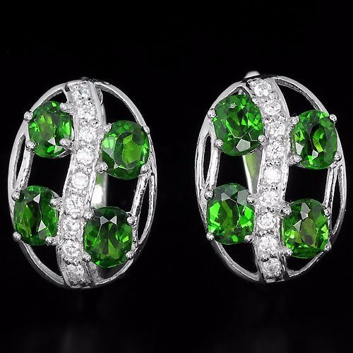 NATURAL AAA GREEN CHROME DIOPSIDE & CZ 925 SILVER EARRING 14K WHITE GOLD COATING; STONE SHAPEOVAL PORTUGESE CUT;STONE DIMENSION5 X 4 MM.;MAIN STONE WEIGHT3.45 CARAT;COLORAAA GREEN;CLARITYIF - VVS;LUSTERDAZZLING;TREATMENTUNHEATED';ORIGIN OF STONERUSSIA;HARDNESS5.0 - 6.0; OTHERFACE OF EARRING 18 X 13 MM. ;WHTIE CUBIC ZIRCONIA 1.5 MM. ;TOTAL 4.21 G.