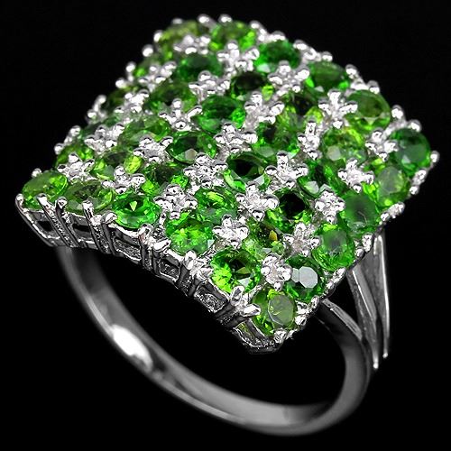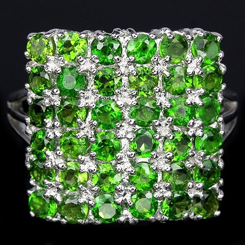 925 Sterling Silver.....RING SIZE -7.25;STONE SHAPE- ROUND PORTUGUESE CUT;STONE DIMENSION2.5 MM.;MAIN STONE WEIGHT- 2.6 CARAT;COLORGREEN;CLARITYIF TO VVS;LUSTERENCHANTING;TREATMENTNATURAL UNHEATED;ORIGIN OF STONERUSSIA;HARDNESS5 - 6;OTHERFACE OF RING 17 X 17 MM. ;TOTAL weight 3.60 Grams