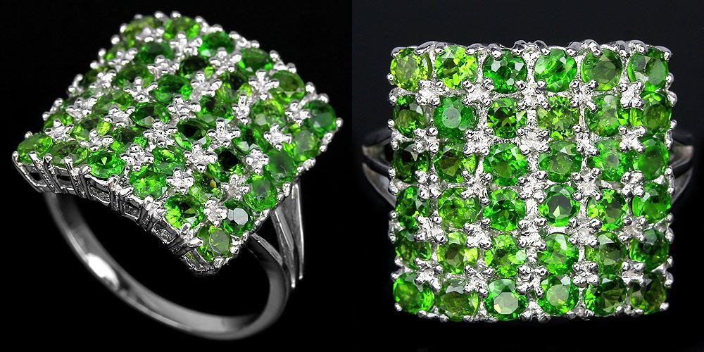925 Sterling Silver.....RING SIZE -7.25;STONE SHAPE- ROUND PORTUGUESE CUT;STONE DIMENSION2.5 MM.;MAIN STONE WEIGHT- 2.6 CARAT;COLORGREEN;CLARITYIF TO VVS;LUSTERENCHANTING;TREATMENTNATURAL UNHEATED;ORIGIN OF STONERUSSIA;HARDNESS5 - 6;OTHERFACE OF RING 17 X 17 MM. ;TOTAL weight 3.60 Grams