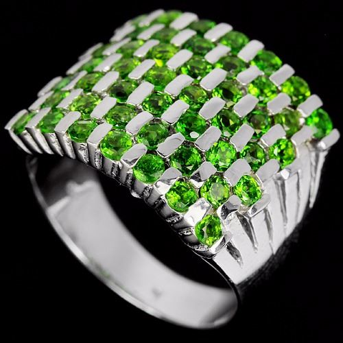 NATURAL AAA GREEN CHROME DIOPSIDE ROUND 925 SILVER RING 14K WHITE GOLD COATING; RING SIZE-7.25 ;ITEM QUANTITY1STONE SHAPEROUND PORTUGUESE CUTSTONE DIMENSION2 MM.MAIN STONE WEIGHT1.95 CARATCOLORGREENCLARITYIF TO VVSLUSTERWINSOMETREATMENTNATURAL UNHEATEDORIGIN OF STONERUSSIAHARDNESS5 - 6OTHERFACE OF RING 13 X 15 MM. TOTAL 5.1 G.