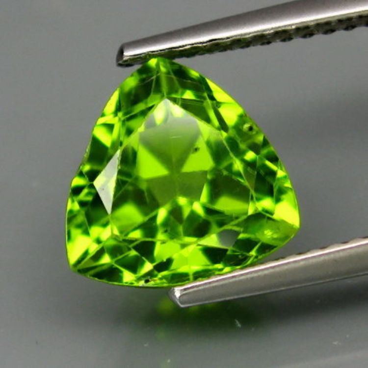 Natural Green Peridot 3.297 carats....SIZE - 9 X 9 X 5.8 mm; VS quality; Trillion cut...top luster fire; origin - Pakistan;