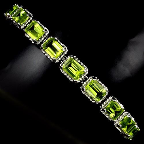 PERIDOT (NATURAL) 14K WHITE GOLD COATING 925 SILVER BRACELETUNIT OF ITEM (S):1 PIECEWEIGHT (CT.):77.21 CT. (total weight of silver + stone)DIMENSION:* STONE 7.0 X 5.0 MM. * LENGTH 7.0 INCHES. * FACE BRACELET 165.0 X 7.0 MM.SHAPE/CUT:OCTAGON FACETCOLOR:TOP RICH GREENCLARITY/GRADE:IF TO VVSLUSTER:GORGEOUSTREATMENT:UNHEATEDORIGIN:PAKISTANHARDNESS:6.5 - 7.0