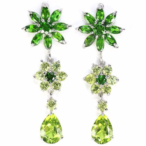 Natural GREEN PERIDOT CHROME DIOPSIDE 925 SILVER EARRIGN 14K WHITE GOLD COATING; STONE SHAPE -MIXED SHAPE; STONE DIMENSION -10 X 7 MM. , 5 X 2.5 MM. , 5 MM. , 3 MM.; ITEM WEIGHT -7.9 GRAM; COLOR -GREEN; CLARITY -IF, VVS -VS; TREATMENT -NATURAL UNHEATED; ORIGIN OF STONE ASIA RUSSIA; HARDNESS 5 - 6.5; OTHER FACE OF EARRING 44 X 15 MM.