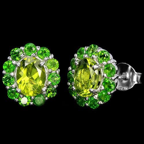 NATURAL GREEN PERIDOT CHROME DIOPSIDE 925SILVER EARRING 14K WHITE GOLD COATING; STONE SHAPE -OVAL ROUND PORTUGUESE CUT; STONE DIMENSION -8 X 6 MM. 2.5 MM.; ITEM WEIGHT -4.5 GRAM; COLOR -GREEN; CLARITY -IF, VVS - VS; TREATMENT -UNHEATED; ORIGIN OF STONE -ASIA RUSSIA; HARDNESS -5.0 - 6.5; FACE OF EARRING 13 X 12 MM.
