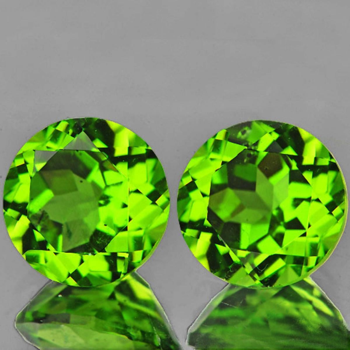 Natural Peridot ...... SHAPE : Round; SIZE ( L x W x D ) : 7.00 mm; QUANTITY : 2 pieces ( Perfectly Matched Pair ); COLOR : BEST AAA Green ; CLARITY : IF-VVS1 (BEST QUALITY); ORIGIN : PAKISTAN; HARDNESS : 7; LUSTER : Excellent!!! TREATMENT : UNHeated