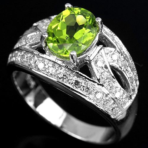 AAA APPLE GREEN PERIDOT & WHITE CZ STERLING 925 SILVER RING size 7.5; STONE SHAPE-OVAL PORTUGUESE CUT;STONE DIMENSION9 X 7.1 X 5 MM.'MAIN STONE WEIGHT2.25 CARAT;COLORAPPLE GREEN;CLARITYIF/VVS;LUSTERENCHANTING;TREATMENTNATURAL UNHEATED;ORIGIN OF STONEPakistan;HARDNESS6.5;OTHERFACE OF RING 20 X 12 MM.; WHITE CUBIC ZIRCONIA 1.5 MM. ;TOTAL weight 5.78 Grams