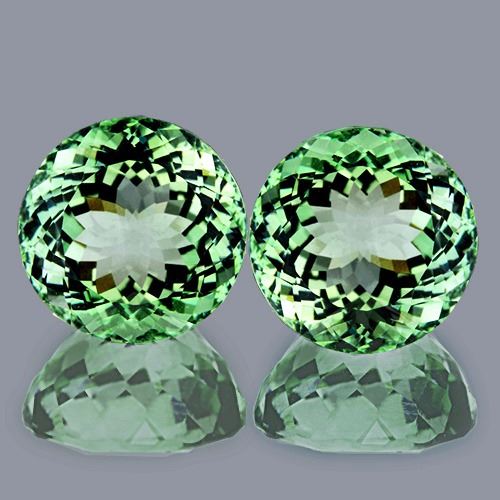 Natural Green Amethyst WEIGHT : 7.02 cts SHAPE : Round SIZE ( L x W x D ) : 9.50 mm QUANTITY : 2 pieces (Perfectly Matched Pair) COLOR : Green CLARITY : IF-VVS1 ORIGIN : Africa HARDNESS : 7 LUSTER : Excellent!!! TREATMENT : 100% Natural Unheated