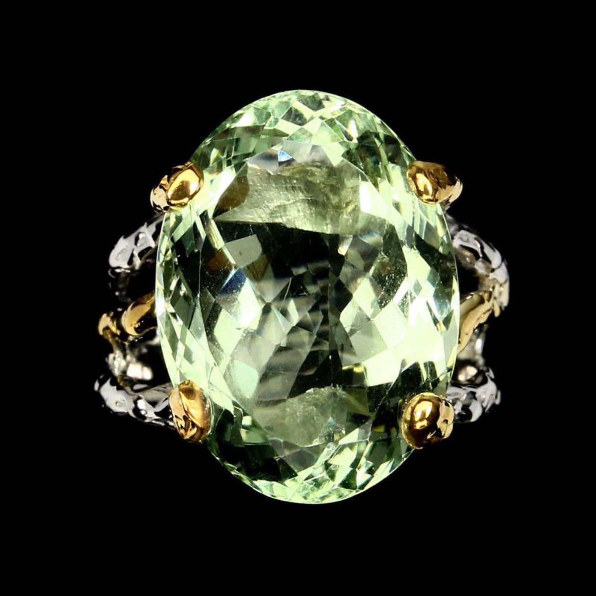 925 STERLING SILVER;PLATE2-TONE WHITE & YELLOW 14K GOLD;RING SIZE8(resizeable)MAIN STONEAMETHYST;TOTAL WEIGHT46.97 CT (TOTAL WEIGHT OF SILVER + STONE)DIMENSION* STONE 20.0 X 15.0 MM. * FACE RING 20.0 X 15.0 MM.MAIN STONE SHAPEOVAL CUT;MAIN STONE COLORTOP NICE GREEN;CLARITY/GRADEIF;LUSTERGLORIOUSTREATMENTHEATED;ORIGINBRAZIL;HARDNESS7.0;