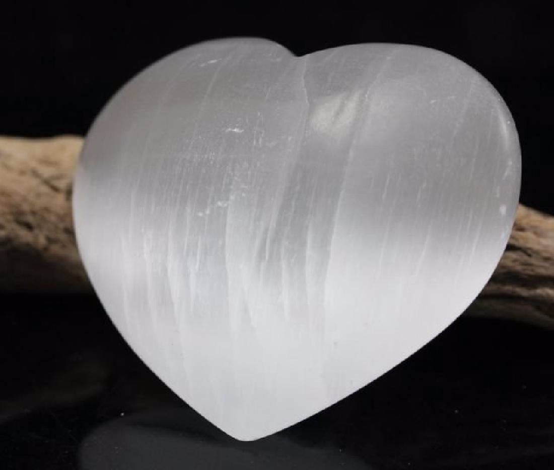 Natural Healing Selenite Heart 75 Carats.......size 60 mm; Beautiful white non-transparent Gypsum selenite crystals, as well as the partly transparent stones commonly come from Mexico. These are popular as they can be shaped into many uses for metaphysical purposes.--------------------------------------------------------------------Selenite crystals work to help you to bring light down from the higher realms into the physical body, to create personal transformation.The white or transparent crystals have a strong vibration that may open the crown chakra and the soul star chakra.This will assist you to contact the Divine Mind and to access the Angelic realm. These are high vibration crystals, that also deliver clarity of mind, by cleansing the aura of negative energy build up, both within the physical and the etheric body.Using White Selenite can be powerful for activating dormant abilities from past lives. It has the capacity to take you to the higher realms, which often happens quickly.