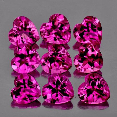 Natural Pink Tourmaline WEIGHT : 1.20 Cts; SHAPE : Heart SIZE ( L x W x D ) : 3.50 mm QUANTITY : 9 pieces ( Perfectly Matched Set) COLOR : AAA Hot Pink Best Color CLARITY : IF-VVS1 (BEST QUALITY) ORIGIN : Brazil HARDNESS : 7 LUSTER : Excellent!!! TREATMENT : UNHeated 100% Natural