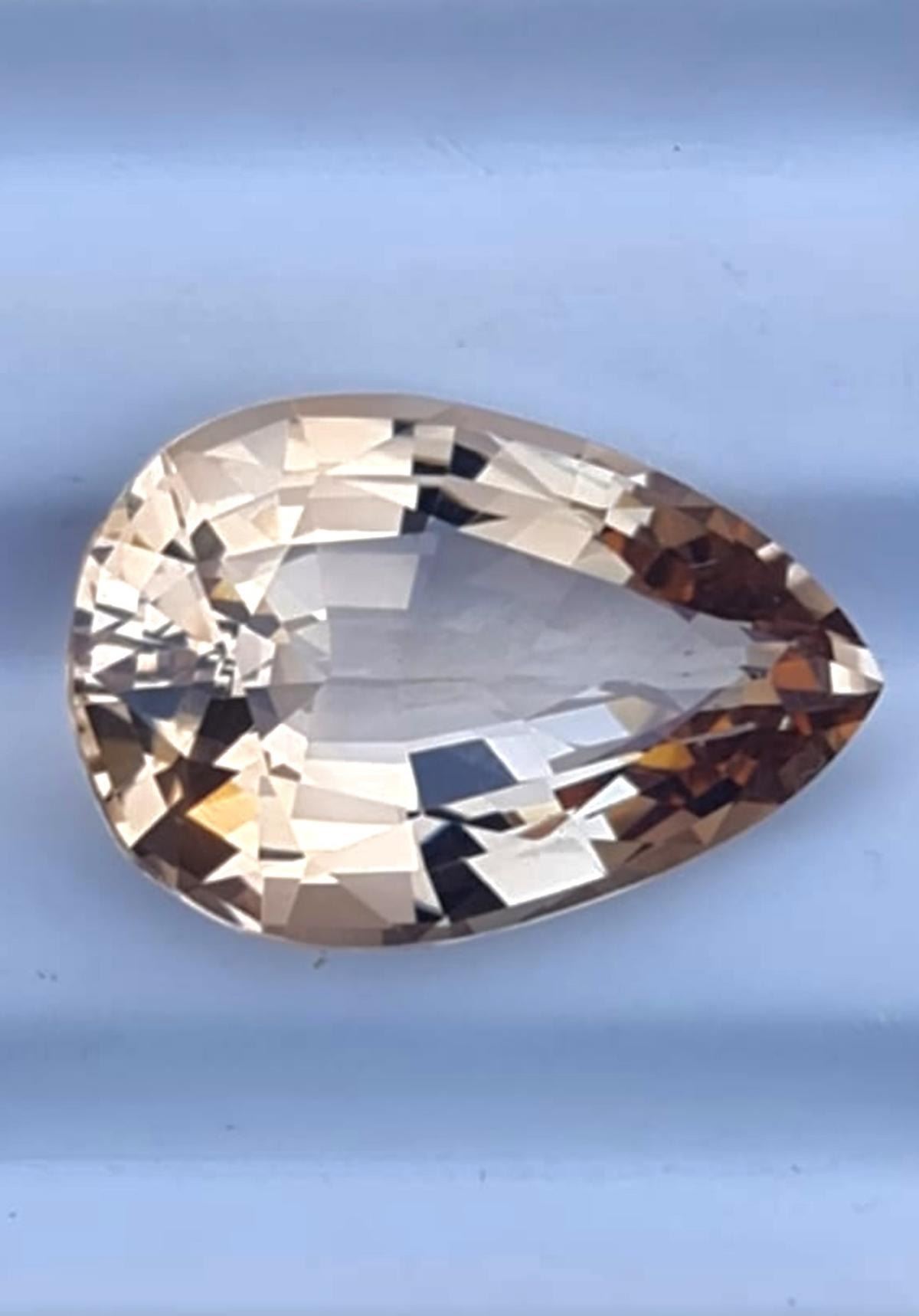 Natural Topaz 30.25 Carats ....Shape - Pear ; SIZE ( L x W x D ) : 24.32 x 16.62 x 10.84 mm; QUANTITY : 1 piece COLOR : Champagne Imperial; CLARITY : VVS/Eye Clean AAA Grade; ORIGIN : Brazil; HARDNESS : 8; LUSTER : Excellent!!! TREATMENT : Heated
