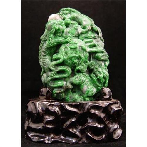 <tr><td>Title:Natural Imperial Green Jade 5 Fu Lions Foo Dogs</td></tr>