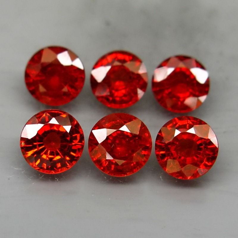 Garnet Spessartine....SHAPE :Round;WEIGHT :4.80 Ct.;SIZE :5.5 Mm.;QUANTITY :6 Pieces;COLOR :Best Orange Red;CLARITY :I1-i2;LUSTER :Superior;ORIGIN :Africa;TREATMENT :None;HARDNESS :7-7.5;