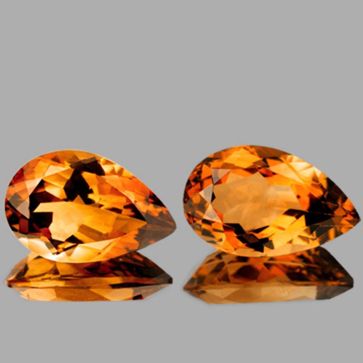 Natural Citrine; SHAPE : Pear; SIZE ( L x W x D ) : 13.00 x 8.00 mm; QUANTITY : 2 pieces ( Perfectly Matched Pair ) COLOR : Intense Golden Orange; CLARITY : IF-VVS1; ORIGIN : Africa; HARDNESS : 7 LUSTER : Excellent!!! TREATMENT : 100% Natural Unheated