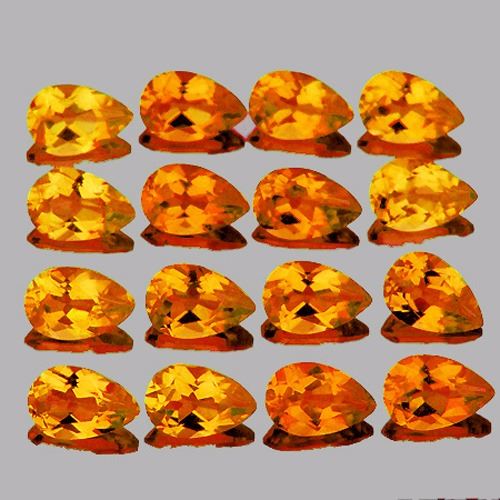 Natural Citrine; WEIGHT : 3.00 cts Plus; SHAPE : Pear; SIZE ( L x W x D ) : 5.00 x 3.00 mm; QUANTITY : 16 pieces ( Perfectly Matched Set ) COLOR : AAA Golden Yellow; CLARITY : IF-VVS1; ORIGIN : Brazil; HARDNESS : 7; LUSTER : Excellent!!! TREATMENT : 100% Natural Unheated