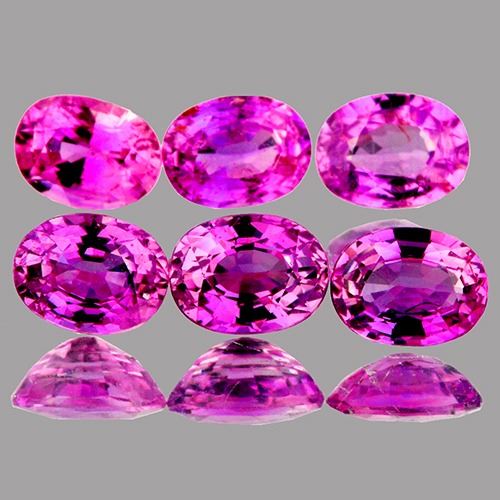 Natural Pink Sapphire WEIGHT : 1.44 cts................ SHAPE : Oval SIZE ( L x W x D ) : 4.00 x 3.00 mm QUANTITY : 6 pieces ( Perfectly Matched Set) COLOR : Intese Pink AAA Color CLARITY : IF-VVS1 ORIGIN : Ceylon HARDNESS : 9 LUSTER : Excellent!!! TREATMENT : Heated