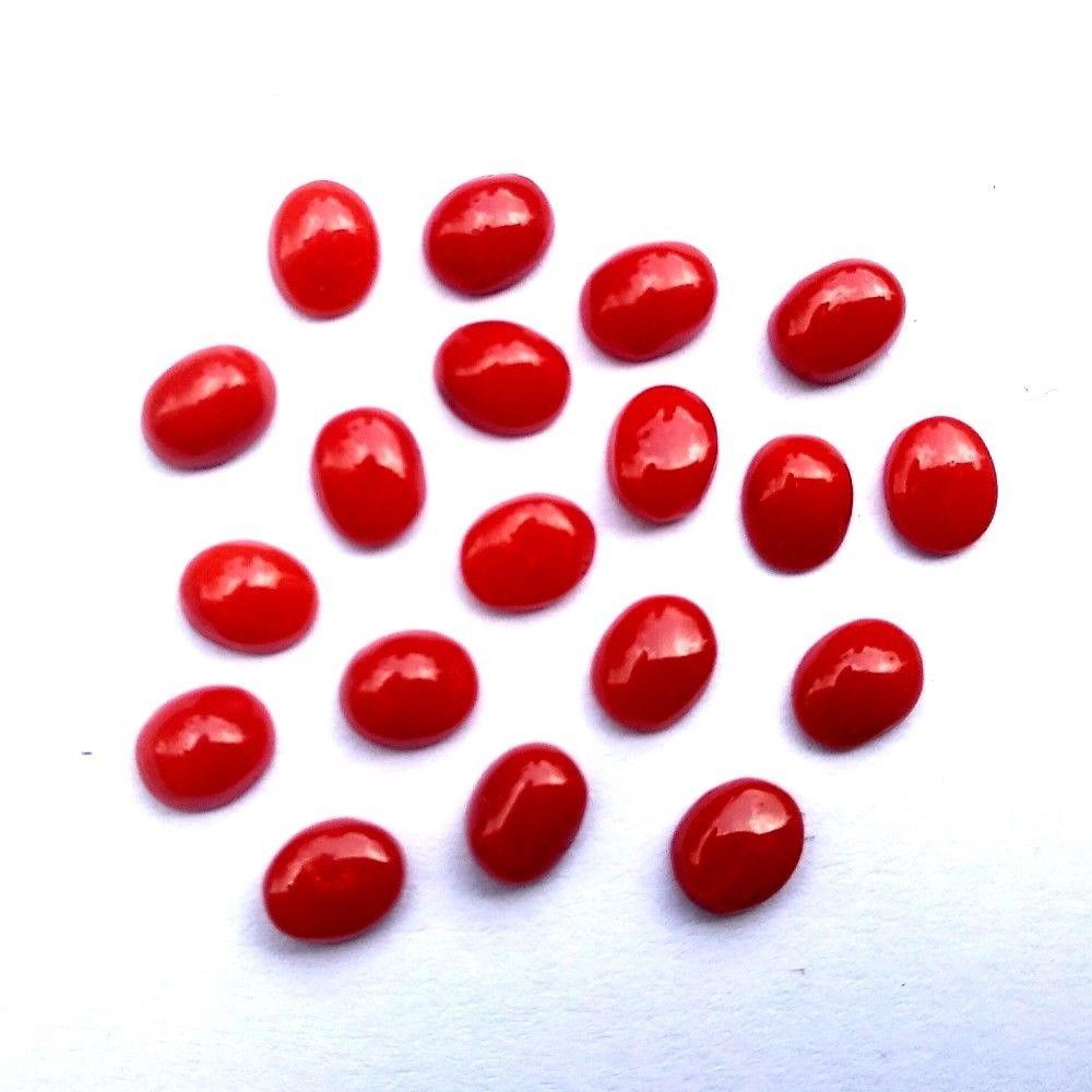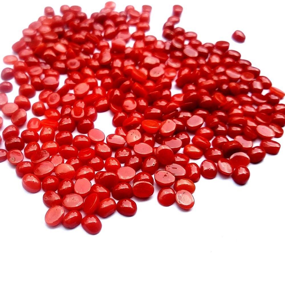 Gemstone Type : Red Coral , Color : Red , Shape : Oval , Size : 4x5 mm , Quantity : 100 Pieces , Weight : 30.40 Cts , Country of Origin : Italy, Country of Manufacture : India