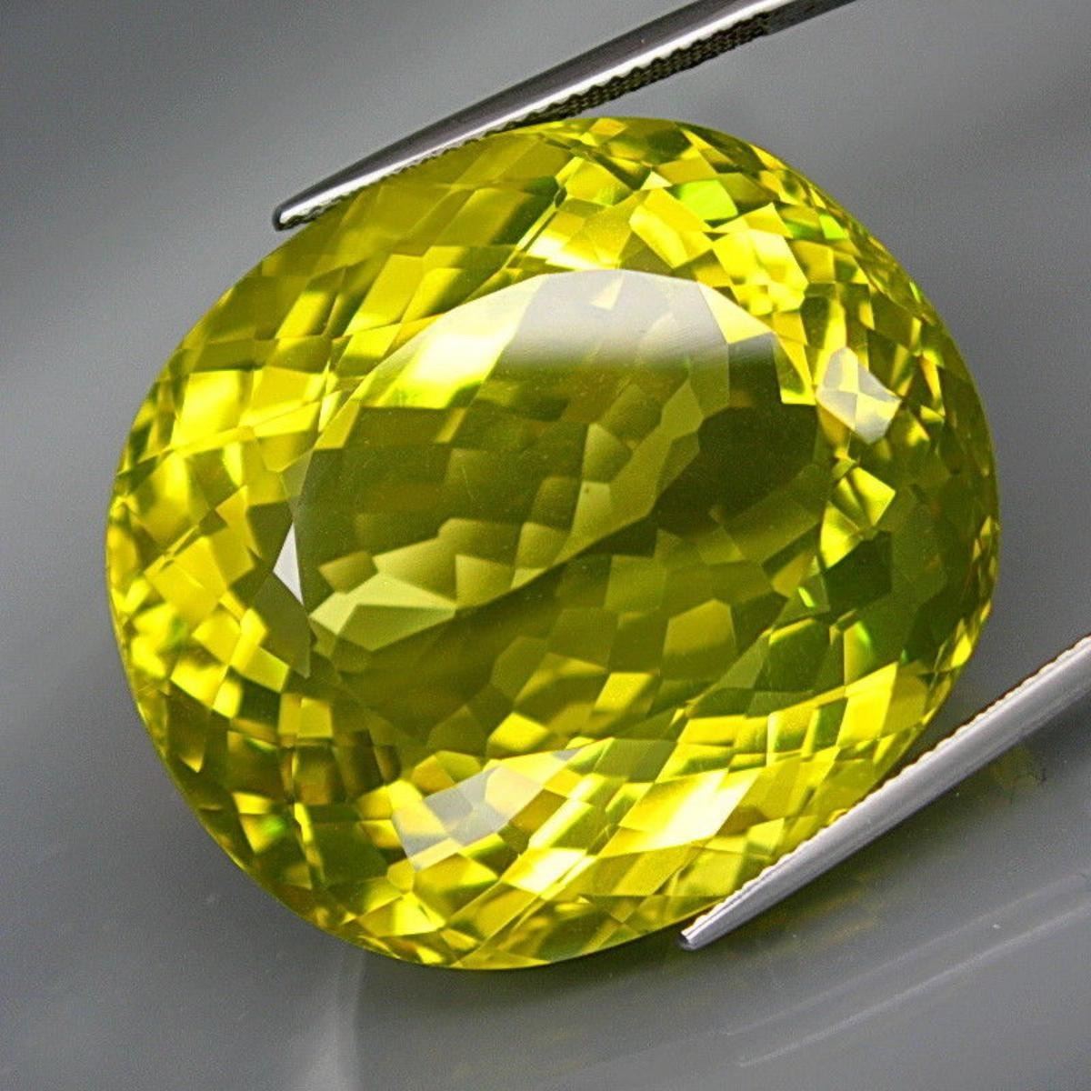 Lemon Quartz SHAPE Oval WEIGHT 117.06 Ct. SIZE 34.1 X 30.3 X 18.4 mm QUANTITY 1 Piece COLOR Lemon Yellow CLARITY VVs/Vs; LUSTER Superior ORIGIN Brazil; TREATMENT None HARDNESS 7