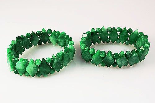 Natural Jade 381.30ctw Stretch Bracelet Lot of 2 **|**|** 6" in Diameter & 0.77" in Width Beautiful Stretch Bracelet made w/ White & Green Jade on Elasticity Cord ; MSRP: $100