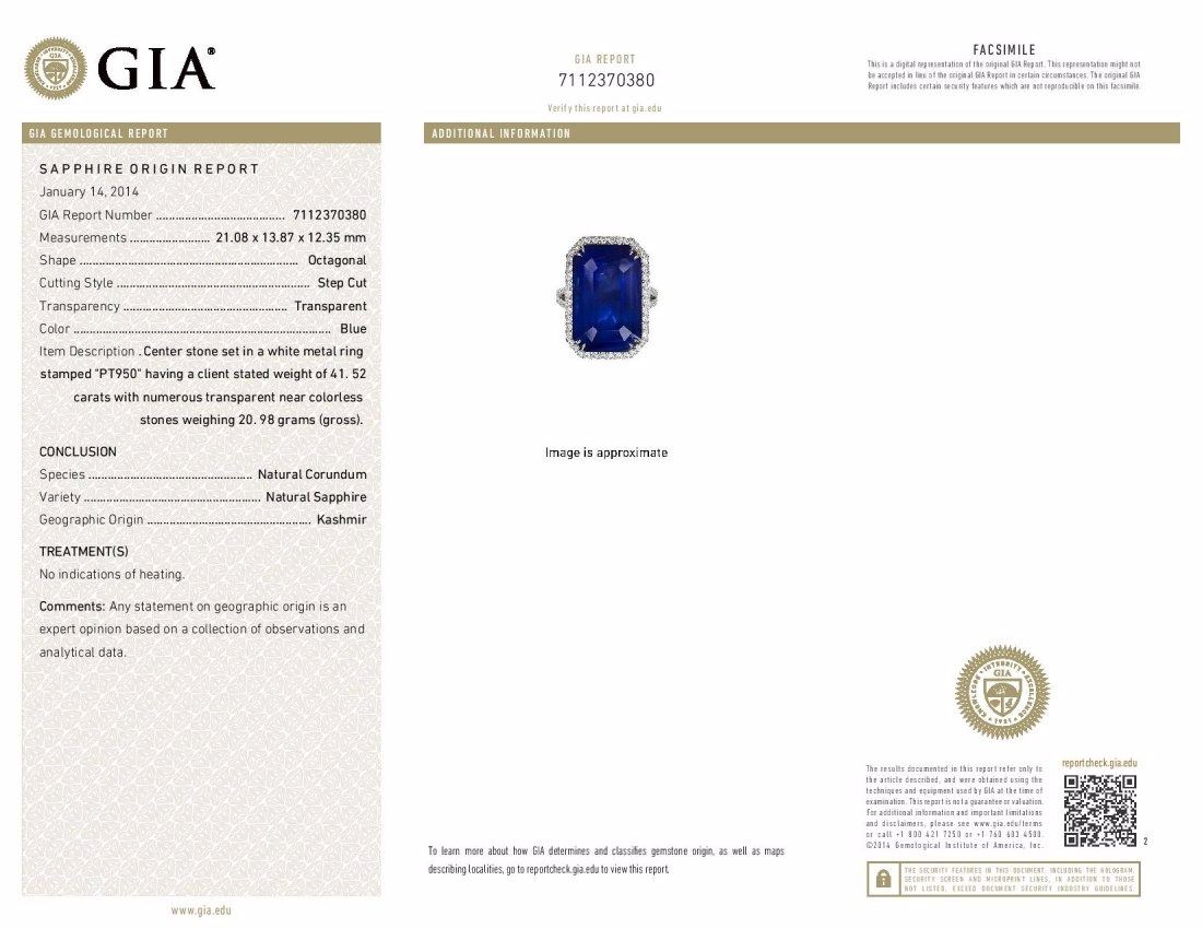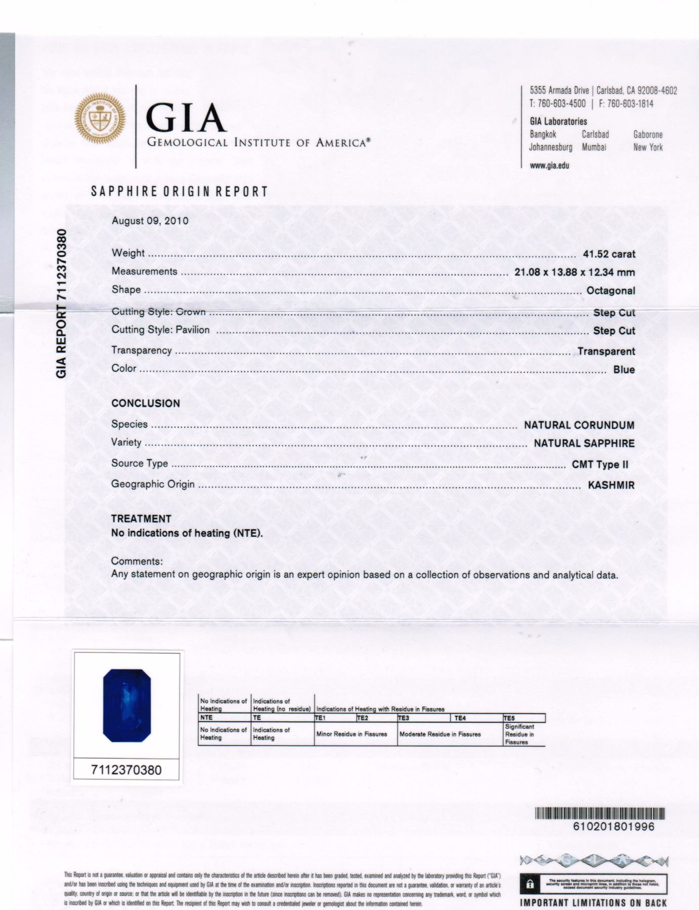 Extremely rare to find such huge kahmir sapphire, 41.52 carats.. already set in a ring. certified by GIA. Christies auction sold 19 carat kashmir sapphire for 3.5 million dollars and we are asking 4 million for 41.52 carat Kashmir Sapphire.