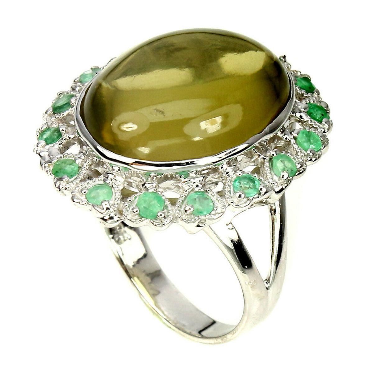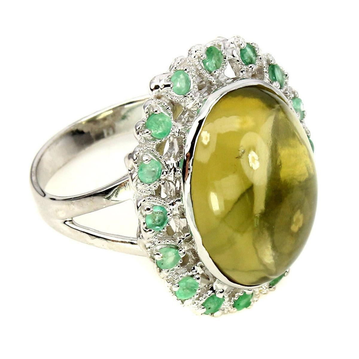 925 STERLING SILVER;PLATE14K WHITE GOLD;RING SIZE9(resizeable)MAIN STONELEMON QUARTZ;OTHER GEMSEMERALD;TOTAL WEIGHT48.59 CT (TOTAL WEIGHT OF SILVER + STONE)DIMENSION* STONE 2.0 TO 19.0 X 15.0 MM. * FACE RING 27.0 X 22.0 MM.;MAIN STONE SHAPE-OVAL CABOCHON;MAIN STONE COLOR-TOP LEMON YELLOWCLARITY/GRADETRANSPARENT;LUSTEREXQUISITE;TREATMENTUNHEATED;ORIGINBRAZIL;HARDNESS7.0 - 8.0;