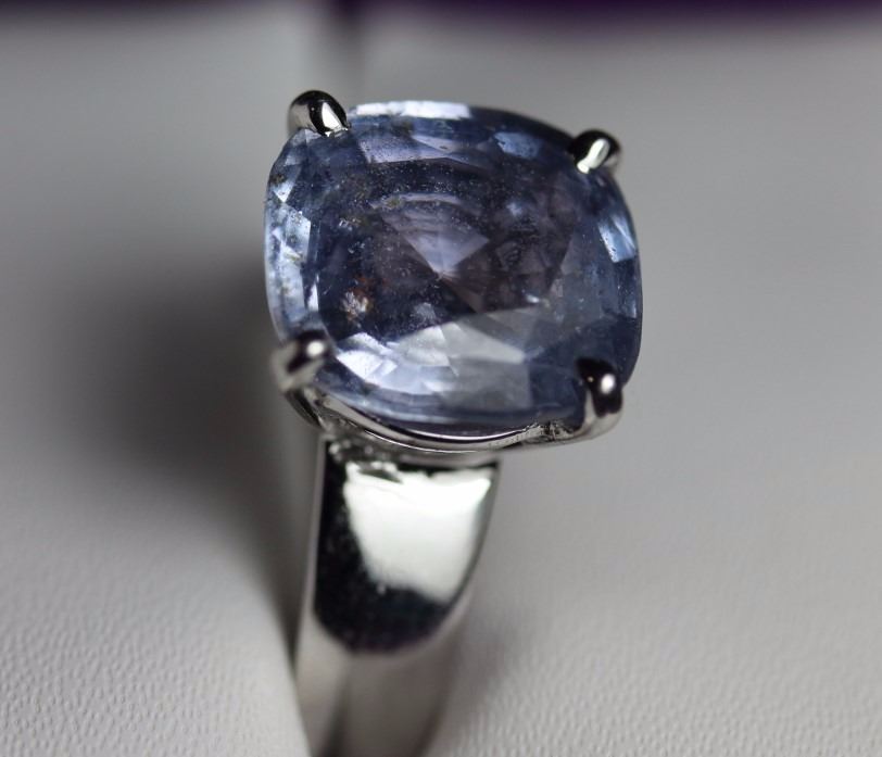 14k Solid white Gold ...4 grams...(Solid Ring)..size 7 (can be resized).....Stunning Purplish Blue Cushion Sapphire .......6.20 Carats....cushion cut; Origin - Ceylon....completely untreated..Free from any kind of treatment.......Certified by IGI lab.