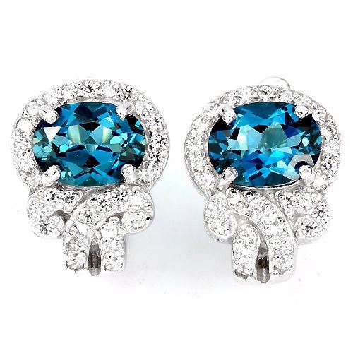 LONDON BLUE TOPAZ (NATURAL) & CUBIC ZIRCONIA 14K WHITE GOLD COATING 925 SILVER EARRINGSUNIT OF ITEM (S):2 PIECESWEIGHT (CT.):24.94 CT. (total weight of silver + stone)DIMENSION:* STONE 8.0 X 6.0 MM. * CZ 1.0 MM.* FACE EARRINGS 14.0 X 11.0 MM.SHAPE/CUT:OVAL FACET & ROUND DIAMOND CUTCOLOR:TOP LONDON BLUE & AAA WHITECLARITY/GRADE:IF TO VVSLUSTER:DELUXETREATMENT:HEATEDORIGIN:AFRICAHARDNESS:8.0