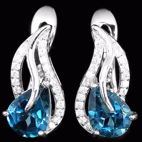 GENUINE 8X6 MM. LONDON BLUE TOPAZ & CZ 925 SILVER EARRING 14K WHITE GOLD COATING; STONE SHAPEPEARSTONE DIMENSION8 X 6 MM.ITEM WEIGHT5.1 GRAMCOLORLONDON BLUECLARITYIF TO VVSLUSTERIMPRESSIVETREATMENTIRRADIATIONORIGIN OF STONEAFRICAHARDNESS8OTHERFACE OF EARRING 16 X 9 MM. WHITE CUBIC ZIRCONIA 1 MM.