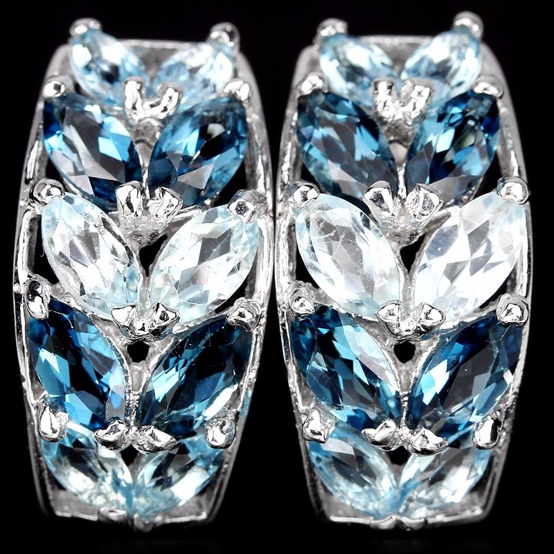 NATURAL LONDON & SKY BLUE TOPAZ MARQUISE 925 SILVER EARRING 14K WHITE GOLD COATING; STONE SHAPE MARQUISE PORTUGUESE CUT STONE DIMENSION 6 X 3 MM. & 5 X 2.5 MM.ITEM WEIGHT 4.3 GRAM COLOR LONDON & SKY BLUE CLARITY IF, VVS - VS ; LUSTER DAZZLING TREATMENT IRRADIATION ORIGIN OF STONE AFRICA HARDNESS 8; FACE OF EARRING 19 X 10 MM.