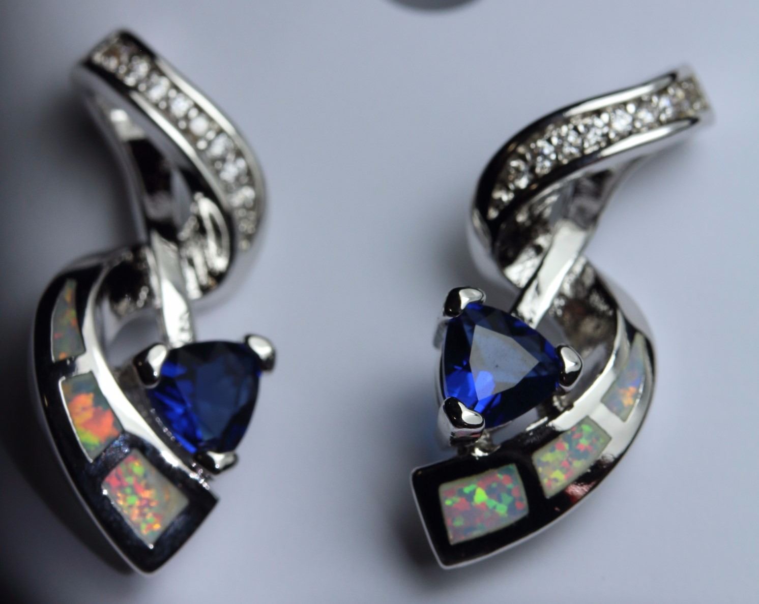 Natural London Blue Topaz Opal Earrings........Made in Canada