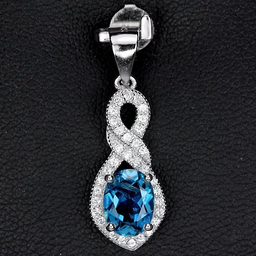 LONDON BLUE TOPAZ OVAL & WHITE CZ STERLING 925 SILVER PENDANT 14k gold plated; STONE SHAPE- OVAL PORTUGUESE CUT;STONE DIMENSION8 X 6 MM.;MAIN STONE WEIGHT-1.6 CARAT;COLOR-LONDON BLUE;CLARITY-IF;LUSTERENCHANTING;ORIGIN OF STONEAFRICA;HARDNESS-8;OTHERFACE OF PENDANT 27 X 9 MM. ;WHITE CUBIC ZIRCONIA 1 MM. ;TOTAL 1.9 G.